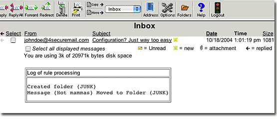 The security of 4SecureMail is obvious to potential users. But what's not immediately obvious, and what's totally cool, is all the ways 4SecureMail can obliterate junk mail problems and protect you from virus threats. |