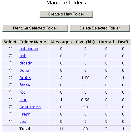 the total size, the number of unread and the number of drafts. The totals for all folders are at the bottom.